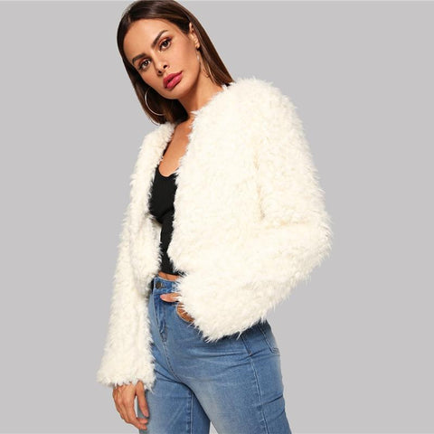 Beige fur jacket, open stitch design, great for going out occasions.