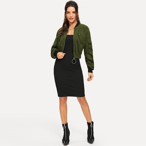 Green jacket with a do up zip and buttoned pockets, Great for nights out and party occasions.