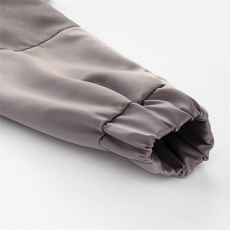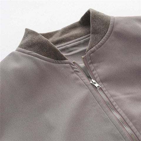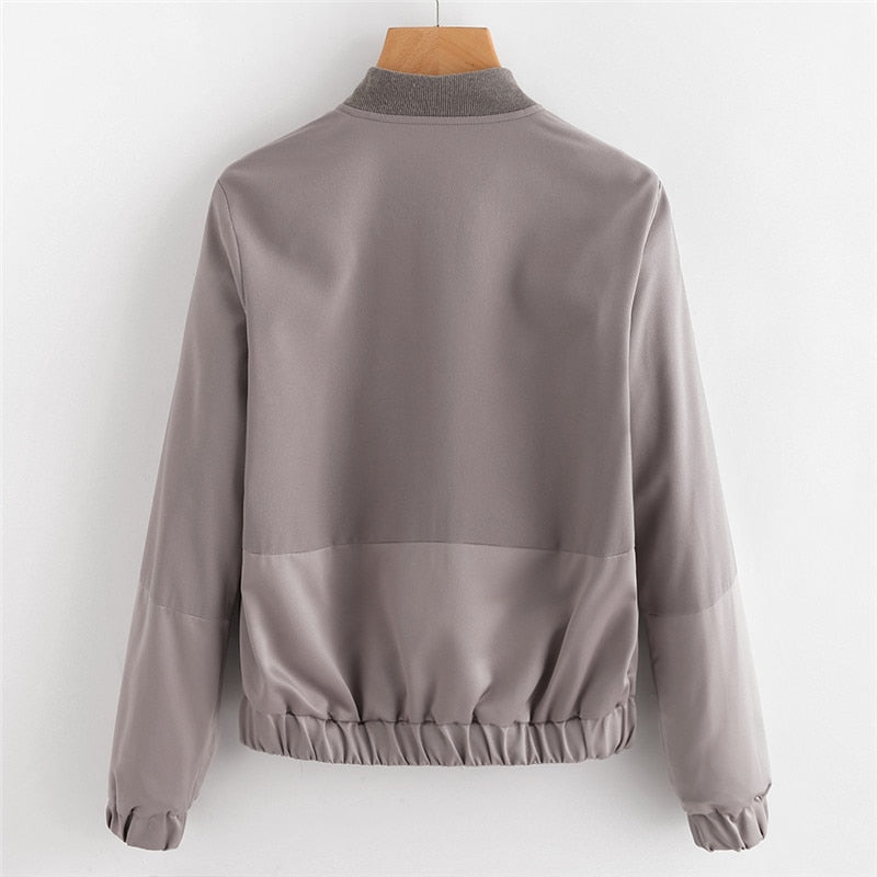Bomber jacket with a natural colour, features two pockets and elasticated cuffs.