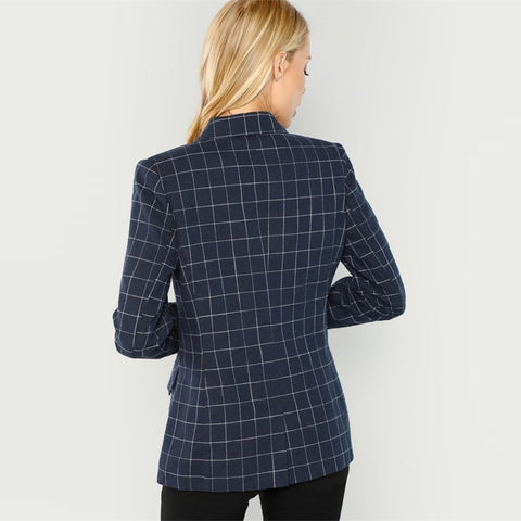 Office styled Navy coat with a line cross design.