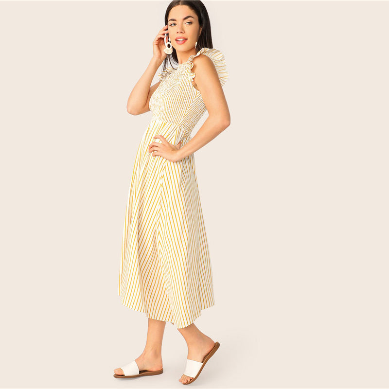 Yellow Medium length Maxi dress With a sleeveless upper body design and ruffled trim on each sleeves.