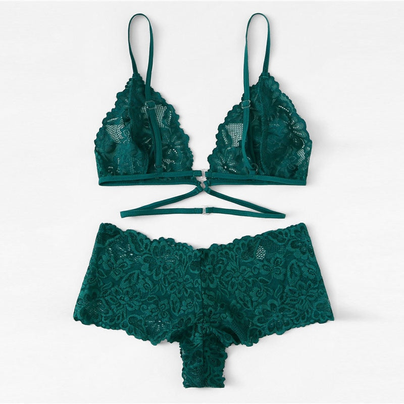 Green Floral Lace Set