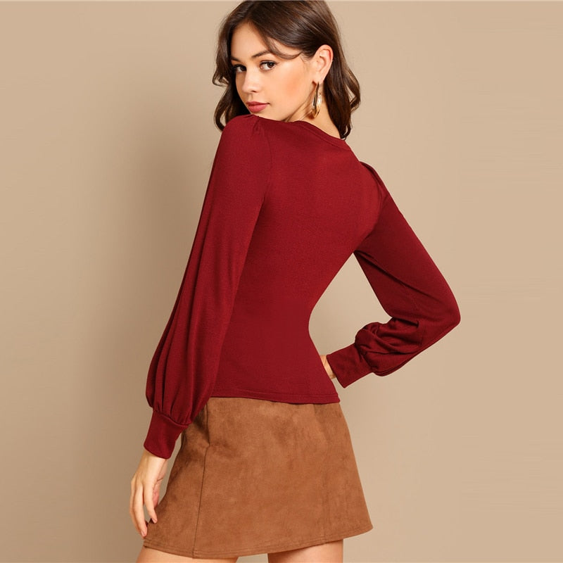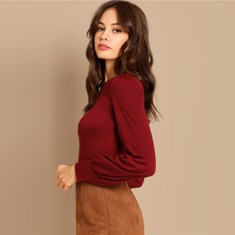 Burgundy Minimalist Long Sleeve Top