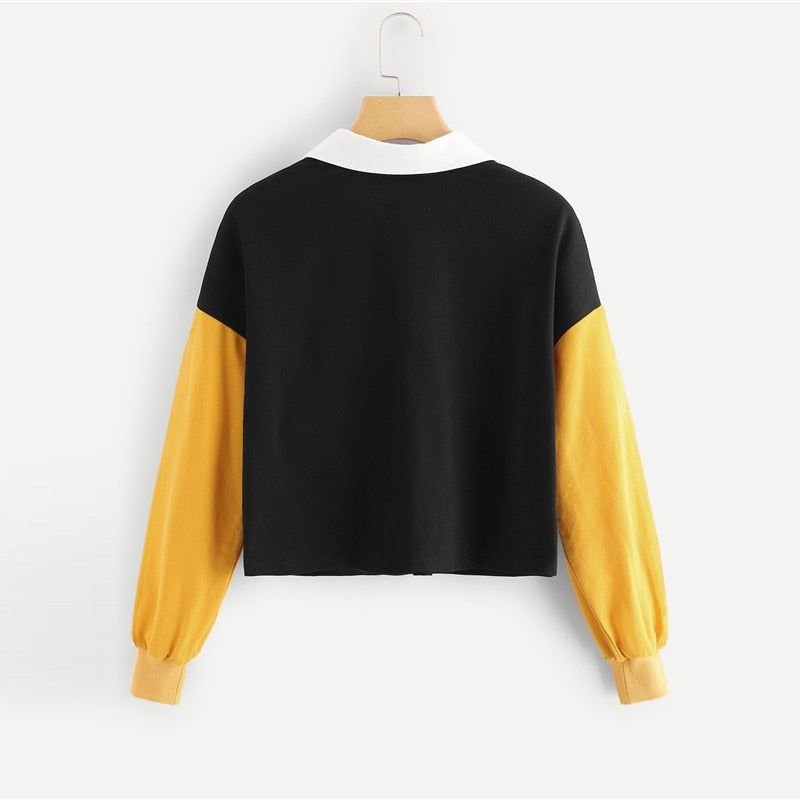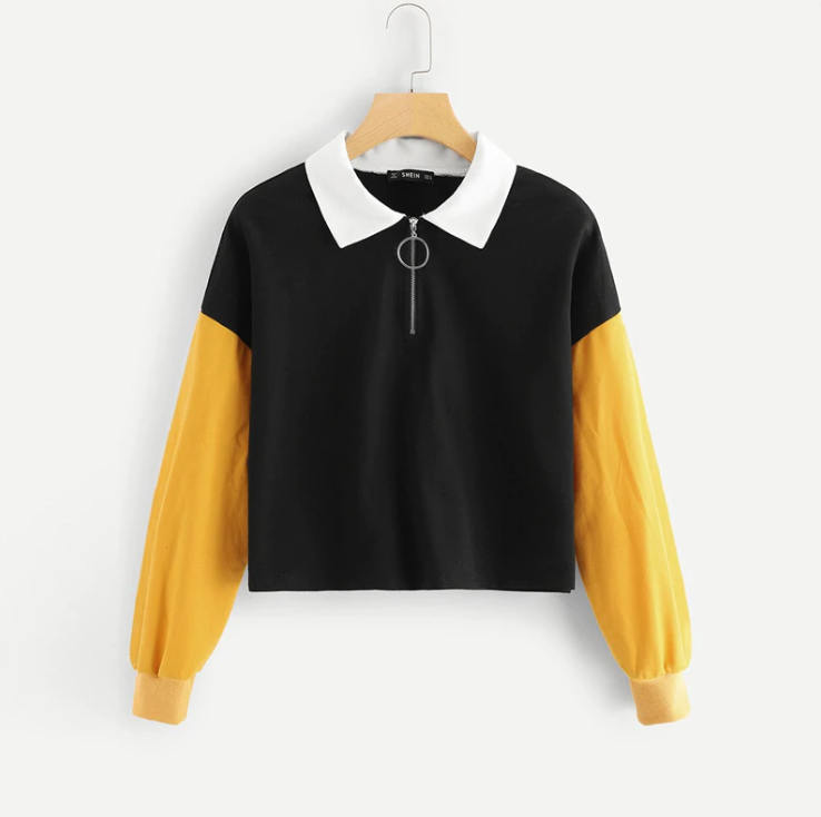Yellow and black colour block sweatshirt with a zip to mid way to the chest.