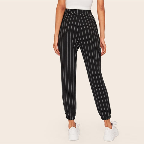 Black vertical striped trousers, perfect for street occasions or casual occasions.