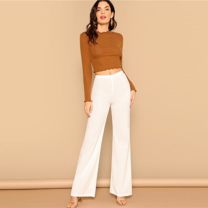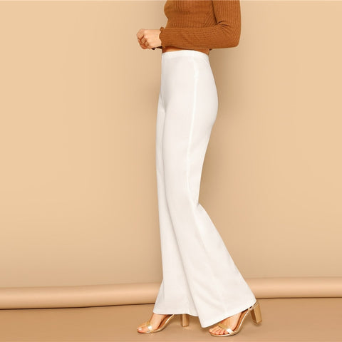 White Basic trousers with a plain design, Elastic waist with a high waist look, Great for any occasion.